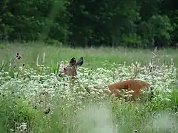 The park includes twenty species of mammal, including the white-tailed deer, the red fox, the striped skunk, the raccoon, the groundhog, the American mink, the eastern grey squirrel, the muskrat, the field mouse, and the North American beaver.[1] Four of the park's animal species are considered to be at-risk: the silver-haired bat, the hoary bat, the eastern red bat, and the tricolored bat.[21] By contrast, the deer is considered to be overabundant in the park, engendering substantial negative impacts on the flora of the park, the regeneration of the forest, the transmission of diseases, including Lyme disease, and road collisions.[22]
