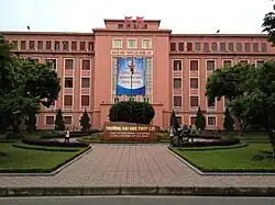 Đống Đa (lit. 'Banyan Heap'; Vietnamese pronunciation:[ɗəwŋ˧˥ ɗaː˧˧]) is one of the four original urban districts (quận) of Hanoi, the capital city of Vietnam.[3] It is bordered by Ba Đình to the north, Hoàn Kiếm to the northeast, Hai Bà Trưng to the east, Thanh Xuân to the south, and Cầu Giấy to the west. The district currently has 21 wards, covering a total area of 9.95 square kilometres (3.84 sq mi).[1] It is the most populous district in Hanoi. As of 2017,[1] there were 420,900 people residing in the district, the population density is 42302 inhabitants per square kilometer, 18 times higher than the overall density of Hanoi. Dong Da district is home to various enterprises and many of Vietnam's most prestigious universities[4] such as Hanoi Medical University, Foreign Trade University, University of Transport and Communications, Thuyloi University.