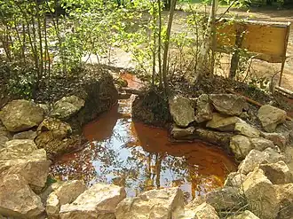 A natural spring is located beneath the formations and has a high mineral concentration. There are two springs: Đavolja voda (Devil's Water), with extremely acidic water (pH 1.5) and high mineral concentration (15 g/L of water), and Crveno vrelo (Red Well).[6] The unusually pungent spring waters were examined for the first time in 1905 by Aleksandar Zega, founder of the Serbian Chemical Society.[1]