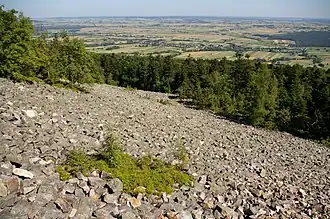 The Świętokrzyskie Mountains are one of the oldest mountain ranges in Europe. They were formed during the Caledonian orogeny of the Silurian period and then rejuvenated in the Hercynian orogeny of the Late Carboniferous period.[1]