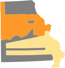 The state of Missouri was a new one, having only joined the United States in 1821, and Missouri statehood was contentious due to national debates over the expansion or restriction of slavery, which was legal in Missouri. The disagreements were temporarily resolved by the Missouri Compromise, which allowed the admission of Missouri as a slave state.[6] At this time, two of the major factions in Missouri politics were families who retained power developed during French rule of the area, and newer arrivals who had come after the United States took control. Power at the time was based in the city of St. Louis.[7] The French faction and its American supporters were known as the "little junto", which was opposed by the "antijunto". A lack of party organization and fluid alliances meant that the division between the two factions was not a bright line.[8]