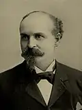 Harrison's aspirations of power in the Democratic Party came in to conflict with former Governor John Peter Altgeld.[5] Despite having lost his bid for reelection as governor in November 1896, Altgeld was a prominent national political figure,[6] and had, since early 1896, held fragile control over Illinois' Democratic Party.[5] Altgeld had been the most prominent Democrat in the state, and had strong advocacy of free silver and an obtained a pro-labor record as during his governorship.[5] Altgeld held control over the state's Democratic Central Committee, and the committee's chair James Orr was largely a puppet of his.[5] Altgeld also was supported by reformist Chicagoans, such as Clarence S. Darrow, Murray F. Tuley, and Edward Fitzsimmons Dunne.[5] Altgeld also had loyal support from many labor leaders and Chicago politicians.[5] As leader of the Illinois Democratic Party he had selected Harrison in 1897 to be the party-backed candidate for mayor. However, a divide between them arose shortly afterwards.[6] Like Harrison, Altgeld also aspired to create a unified Democratic organization of his own.[5] Thus, the two politicians became the heads of rival factions, not initially centered around ideology (each were pro-silver and had supported William Jennings Bryan), but rather centered around each of them as political personalities, and their quest for political power.[5] The personal divide between the two was exacerbated by disagreements about the traction debate and whether or not municipal ownership was the solution to it.[6] However, for a while both were able to keep their feelings about each other private.[5] Harrison further upset Altgeld by, at the request of Tammany Hall, campaigning for the Democratic mayoral nominee in the 1898 New York City mayoral election, who was running against Altgeld's longtime friend Henry George.[5] Their discontent with each other became public during an early 1898 dispute over when to schedule the state Democratic convention.[5]