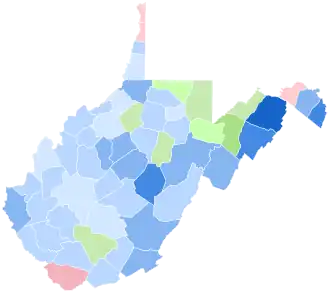 2. ^ Because Roosevelt finished ahead of Taft in West Virginia as a whole, all margins give are Wilson minus Roosevelt unless stated in the total for the county in question.