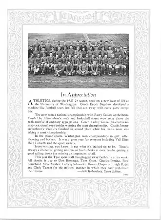 3. ^ a b "Two games are taken by Huskies". The Tacoma Sunday Ledger. September 30, 1923. Retrieved June 19, 2025 – via Newspapers.com.