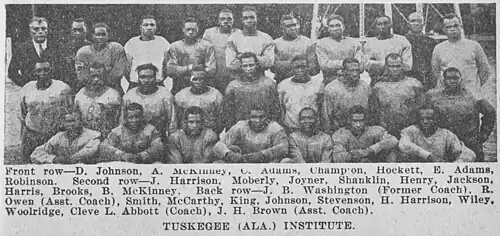 2. ^ Paul W.L. Jones, "Foot Ball in the Colored Colleges," in E.K. Hall (ed.), Spalding's Official Foot Ball Guide, 1931. New York: American Sports Publishing Co., 1931; p. 187.