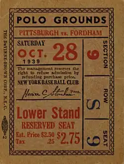 67. ^ Tom Hopkins (October 29, 1939). "Pitt-Fordham Detail". Pittsburgh Sun-Telegraph. p. Part 3–4. Retrieved November 18, 2022 – via Newspapers.com.