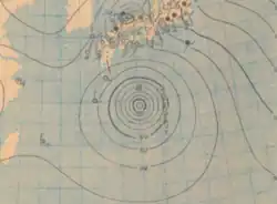 In Japan, Typhoon Ida is called Makurazaki Typhoon. It was the strongest typhoon to hit Kyushu on record, with a minimum sea-level pressure of 916.1 hPa (27.05 inHg) observed on the land and a maximum wind gust of 62.7 metres per second (140 mph), which was recorded at a weather station in Makurazaki.[9] More than 2,000 people were killed in the Hiroshima Prefecture after heavy rains brought by a weakening Ida caused severe landslides.[10]