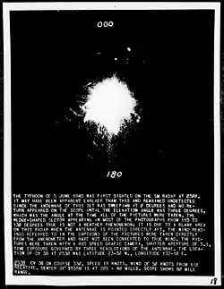Radar image of typhoon Connie on June 5 by USS Shangri-La
