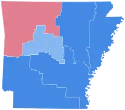 Arkansas 2,648 49.42% 2,697 50.34% 13 0.24% -49 -0.92% 5,358