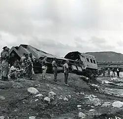 Train wreckage on the banks of the Whangaehu River following the Tangiwai disaster