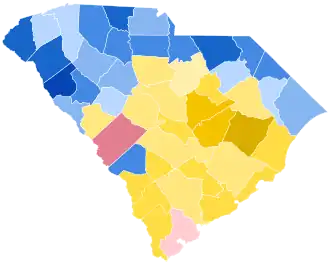 | Spartanburg | 16,637 | 65.03% | 2,124 | 8.30% | 6,822 | 26.67% | 9,815[b] | 38.36% | 25,583 |