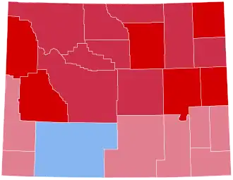 Wyoming was won by incumbent President Dwight D. Eisenhower (RPennsylvania), running with Vice President Richard Nixon, with 60.08 percent of the popular vote, against Adlai Stevenson (DIllinois), running with Senator Estes Kefauver, with 39.92 percent of the popular vote, a Republican victory margin of 20.2%.[5][6] This margin represented a slight decrease from Eisenhower's victory in the state 4 years earlier in 1952, despite the fact that he won nationwide by a larger margin. Nevertheless, Wyoming still weighed in as 2.8% more Republican than the rest of the nation. Ironically enough, despite his margins in most of the counties he won being slightly less than 1952.