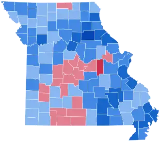 Missouri was won by incumbent President Lyndon B. Johnson (DTexas), with 64.05 percent of the popular vote, against Senator Barry Goldwater (RArizona), with 35.95 percent.[3][4] As of the 2024 presidential election, this is the last time that Perry, Holt, Lawrence, Jasper, Polk, Greene, Cooper, Newton, Cape Girardeau, Barry, St. Charles, and Barton Counties voted for a Democratic presidential candidate.[5]