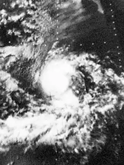 On July 6, a tropical depression formed south of Mexico. The depression had its origin in a loosely organized area of squalls which had first appeared on satellite photos late on July 5. It strengthened to a tropical storm on the 9th and was named Denise.[5] On July 15, Denise, now in the Central Pacific weakened into a tropical depression. The depression dissipated south-west of Hawaii on July 18, never threatening land.[6][7][8]