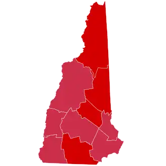 Reagan's 68.66% of the vote in New Hampshire is tied with William McKinley's 68.66% of the vote in the state in the 1896 election as the highest percentage of the vote any Republican presidential candidate has ever received in New Hampshire, although McKinley did beat Reagan in terms of margin, winning by 42.78% versus Reagan's 37.71%. As of 2024, this remains the last time that an incumbent Republican president has carried New Hampshire. This would be the only election between 1952 and 2024 in which New Hampshire had lower turnout than the national average.[2] Reagan's winning margin of over 146,000 votes is the largest in history for a presidential candidate in New Hampshire.