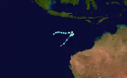 Tropical Cyclone Nicholas originated from a broad area of low pressure associated with a monsoonal trough south of Sumatra on November 25. It tracked south and gradually organized itself and became a tropical cyclone early on November 29. It then began to move east and passed through major shipping routes near Christmas Island, though none of the ships record any extensive winds from the nearby cyclone. Nicholas, while remaining a small system, continued to intensify and by December 3 reached a peak intensity as a category four cyclone with winds of 115 mph (185 km/h) 10-min sustained and a pressure of 945 hPa. Afterwards the cyclone turned almost directly south and gradually weakened. On December 7 the Nicholas's convection began to wane and the system had fully dissipated by that evening.[1]