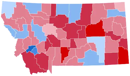 Bush won by a margin of 5.87%, much lower than usual in this typically solid Republican state, largely due to the persistent drought and Farm crisis on the Great Plains, a result making Montana 1.93% more Democratic than the national average. Since 1916 this is the solitary election when Blaine County, the most consistent bellwether county in the nation, has supported a losing presidential candidate; Bush is thus the only Republican to win the White House without carrying this county.[1] It is also the last time Montana has voted more Democratic than the nation at-large and one of only two since 1956 (along with 1972),[2] and the last occasion northwestern Lincoln County has supported a Democratic Presidential nominee.[3] Thus, Iowa (with four counties), Texas (with three), and Montana (with one) are the only states containing counties that Dukakis (as of 2024) was the last Democrat to carry.