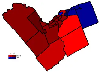 The race for mayor only had two major candidates, that of the Chair of the Regional Municipality of Ottawa-Carleton, Bob Chiarelli and the mayor of the City of Gloucester, Claudette Cain. Cain did very well in her native Gloucester, as well as in the more francophone areas like Cumberland and Vanier. Bob Chiarelli won most of the other wards, including one that was partly in Gloucester. His strongest showing was in Kanata and Kitchissippi Ward.