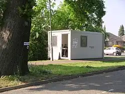 A polling station in a temporary cabin in position in the South of Coventry for the UK council elections on 3 May 2007.