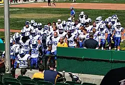 Presbyterian leaves the field during their game against California