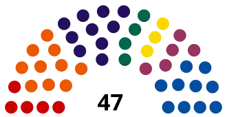 Coalition talks started soon after the election. Media talked about Martin Baxa, Martin Zrzavecký and Pavel Šrámek as possible candidates for Mayor.[25] Coalition needed to consist of at least 3 parties.[26] Coalition was formed on 18 October 2014. Civic Democratic Party formed Council with Czech Social Democratic Party, Christian and Democratic Union - Czechoslovak People's Party and Citizens Patriots. Coalition has majority of 27 seats.[27] Social Democrat Zrzavecký became the mayor while Civic Democratic leader Baxa became deputy Mayor.[28] Council consists of 4 Civic Democrats, 3 Social Democrats, 1 Christian Democrat and 1 Citizen Patriot.[29]