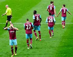 66. ^ a b "West Ham charged for protesting Mark Noble red card". BBC Sport. 2 September 2015. Retrieved 2 September 2015.