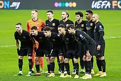 ![]() Barcelona players line up before facing Dynamo Kiev on 24 November 2020 | ||||