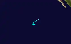 On August 3, the NHC began monitoring a tropical disturbance well to the south of the Baja California peninsula, and to the west of another developing disturbance.[36] The following day, the system quickly developed into Tropical Depression Five‑E.[37] The newly-formed cyclone strengthened into Tropical Storm Emilia early on August 5.[38] The disturbance east of Emilia developed into Tropical Storm Fabio the same day, and the cyclones began to interact with one another.[39] Emilia steadily strengthened as it became the dominant storm in its interaction with Fabio. After initially moving southward, the storm gradually turned back to the west then northward around Fabio.[40][41] Emilia reached its peak intensity early on August 7 with maximum sustained winds of 70 mph (115 km/h) and a minimum central pressure of 988 mbar (29.2 inHg). [42] Later that day, Emilia absorbed the remnants of Fabio as it accelerated northward.[43] Heading over cooler waters, Emilia began to quickly weaken. The storm produced little organized convection the following day, as it crossed the 75 °F (24 °C) isotherm towards even colder SSTs.[44] The storm degenerated into a post-tropical remnant low by 03:00 UTC on August 9, about 980 mi (1580 km) west of the southern tip of the Baja California peninsula.[45]