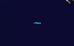Tropical cyclogenesis resumed in late August with the formation of Hurricane Gilma on August 18.[10] Gilma became the first major hurricane of the season on August 22.[11] Hurricane Hone developed in the Central Pacific basin also on August 22, becoming the first tropical cyclone to form in that basin in five years.[3] They were joined by Tropical Storm Hector on August 25 in the eastern Pacific proper.[12] Hone would later move out of the basin into the Western Pacific. Hone and Gilma were the only Central Pacific tropical cyclones this year.[13]