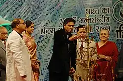 The Chief Guest and renowned actor Shahrukh Khan lighting the lamp at the inauguration of the 38th International Film Festival of India (IFFI-2007) at Panaji, Goa on November 23, 2007.