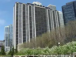 It was developed by Jerrold Wexler, who saw the legally protected lakefront as an ideal location for high income young office workers without children. In 1957, he encountered legal difficulties acquiring a lakefront site. Mayor Richard J. Daley, worried about a tendency of upscale Chicagoans to move to the suburbs, supported the project and told the planning department to make it work. The lakeshore was legally protected, but the city secured the needed legislation and resolved disputes with the Illinois Central Railroad, which originally owned the property. The city extended Randolph Drive into the lake area making the project possible. It was completed in 1962, as one of the largest apartment buildings in the world outside of New York City, with over 900 one-and two-bedroom units. It offered indoor parking, a pool and exercise facilities, a restaurant and a small grocery store. When it opened in 1962 The Chicago Sun-Times newspaper reported that Loop-area apartment towers such as Marina City, a few blocks away, "caught the city by surprise." A near-Loop location permitted one to walk to work at hundreds of office buildings, as well as walking access to the major department stores and theaters. In 1963 it became the first major apartment building in this part of downtown Chicago and started the trend of downtown living so that it is now surrounded by other upscale apartment and condominium buildings. However, after the 1970s, the amenities tended to leave the Loop and moved to North Michigan Avenue. It was converted from apartments to condominiums in 1973.[1] Today the building houses a few businesses including the Lakefront Children's Academy.