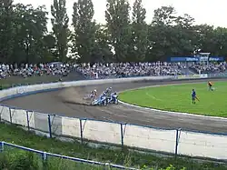- ^ a b Kuczmera, Dariusz (2018-07-29). "Otwarcie stadionu żużlowego w Łodzi. Wielu widzów, hymn, łzy i oberwanie chmury". dzienniklodzki.pl (in Polish). Retrieved 2024-06-09.