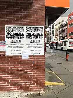 In January 2023, more than 40 Chinatown community groups, nonprofits, and business organizations announced the "Chinatown Coalition to Oppose the Arena". This coalition has the assistance from the Asian American Legal Defense and Education Fund.[21]