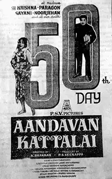 Aandavan Kattalai (transl. God's command) is a 1964 Indian Tamil-language film directed by K. Shankar and produced by P. S. Veerappa. The film stars Sivaji Ganesan and Devika, with J. P. Chandrababu, K. Balaji, S. A. Ashokan, A. V. M. Rajan and Pushpalatha in supporting roles. It was released on 12 June 1964. The film is loosely based on the 1930 German film The Blue Angel.[1]