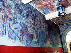However, the market's most distinctive feature is the approximately 1,450 square meters of wall and ceiling space covering in murals.[2] These murals were painted by students of Diego Rivera and under his direction.[1][2] Six of the ten painters involved with the project were Mexican, three were American and one was Japanese, working to “bring art to the people”[2] and paid 13.50 pesos (3.75 U.S. dollars approximately) for each square meter painted. The murals are located in the main entrances, vestibules, patios and hallways of the market.[2]