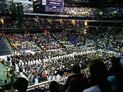 The March for Life is an annual rally protesting both the practice and legality of abortion, held in Washington, D.C., on or around the anniversary of Roe v. Wade on January 22, a landmark decision issued in 1973 by the United States Supreme Court decriminalizing abortion. The march, whose stated mission is to "End abortion by uniting, educating, and mobilizing pro-life people in the public square", advocates for overturning Roe v. Wade.[37][38] The event typically draws tens of thousands of attendees.[39][40] The March for Life proceedings begin around noon.[41] They typically consist of a rally at the National Mall near Fourth Street (in 2018, this will be near 12th St. NW).[42] It is followed by a march which travels down Constitution Avenue NW, turns right at First Street NE, and then ends on the steps of the Supreme Court, where another rally is held. Many protesters start the day by delivering roses and lobbying members of Congress.[43] The first March for Life, which was founded by Nellie Gray, was held on January 22, 1974, on the West Steps of the Capitol, with an estimated 20,000[44] supporters in attendance. The march was originally intended to be a one-time event, in hopes that the Supreme Court would reverse Roe v. Wade immediately a year after its ruling. However, after the first march in 1974, Gray took steps to institute the rally as a yearly event until Roe v. Wade was overturned by incorporating more grassroots anti-abortion activists into the march, which would later be officially recognized as a nonprofit organization the same year.[45] During the 33rd annual March for Life in 2006, the nomination of Judge Samuel Alito to the Supreme Court caused a major shift for the movement, because of the expectation that Alito would "win Senate approval and join a majority in overturning Roe."[46]