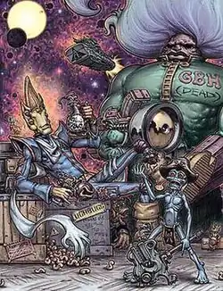 • "The Doppelgarp" (in 2000 AD #452-472, 1986)