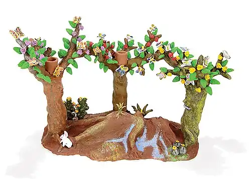 Alba Noemí López Zárate is the wife of Sergio García Aguilar and daughter-in-law of Josefina Aguilar Alcántara. She learned the art form of clay-making from Josefina at the age of 16 years old, who encouraged her to pursue the craft.[4] Alba received an honorable mention in ceramics from the Friends of Oaxacan Folk Art in 2013. In her art piece, she explored the relationship between humans and the earth, featuring icons such as butterflies and trees to represent nature. Her main concern that was reflected in her work is the state of the earth itself, and what will be left for future generations in such a destructive time.[4]