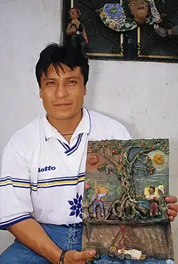 The Aguilar family are clay-making artisans from Ocotlán de Morelos, a rural town in the state of Oaxaca, Mexico. The town's clay production included only utilitarian items until Isaura Alcántara Díaz and her husband, Jesús Aguilar Revilla, expanded their wares into decorative figures and religious items.[1] The couple passed their craft down to their daughters Guillermina, Josefina, Irene, and Concepción, who have continued to innovate their own styles and techniques around subject matters related to the life and traditions in Oaxaca as well as iconic Mexican figures. The family craft and artistic recognition lives on through the children and grandchildren of these four women.
