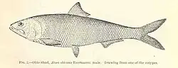 16. ^ a b Evermann, Barton Warren (1902). "Description of a New Species of Shad (Alosa ohiensis), with Notes on Other Food-Fishes of the Ohio River" (PDF). In Bowers, George M. (ed.). U.S. Commission of Fish and Fisheries, George M. Bowers, Commissioner, Part 27: Report of the Commissioner for the Year Ending June 30, 1901. Washington: Government Printing Office. pp. 275–288. Retrieved 31 December 2022 – via Penobscot Bay Watch.