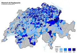 The Albanian language as the language of best command in Switzerland as of 2000.
