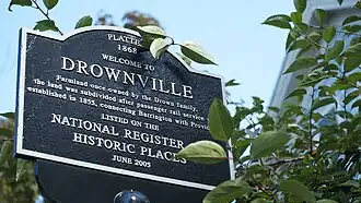 The Alfred Drowne Road Historic District of Barrington, Rhode Island, encompasses a suburban area developed between about 1860 and 1910, a period of significant suburban growth in Barrington spurred by the connection of the town by rail to Providence in 1855. This 27-acre (11 ha) residential area was before that time farmland owned by Alfred Drown, whose c. 1830 farmhouse still stands at 13 Alfred Drowne Road. The house of his son Benjamin, built c. 1856, is at number 27. The district includes properties along Alfred Drowne Road, as well as a few properties on Washington Street and Annawamscutt Road which are immediately adjacent.[2]