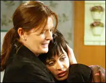 Alistair, posing as Charlie, hugs accomplice (and yet-to-be-revealed daughter) Beth Wallace