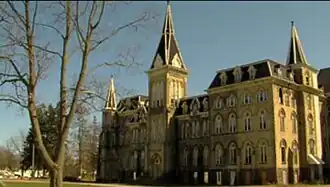 Between 1918 and 1953 new athletic facilities, a chapel and the amphitheater were constructed. In 1959 a music building was constructed.[9] By 1973 the school began to experience a significant financial struggle to continue operation.[10] In 1975 a portion of the residence was opened as a satellite seniors home for a local long term care facility.[11] That same year a co-ed elementary school was established on campus.