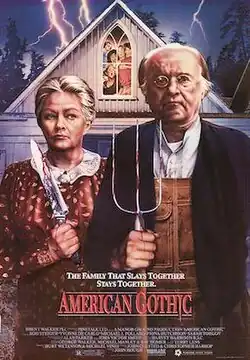 American Gothic is a 1988 slasher film directed by John Hough and starring Rod Steiger, Yvonne De Carlo, Sarah Torgov, Janet Wright, and Michael J. Pollard. The film follows a group of travelers who become stranded on an island in the Puget Sound where they find themselves in the clutches of a demented family of murderers. The film's poster is a pastiche of the Grant Wood painting of the same name.[8][9]