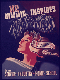 During World War II, American music helped to inspire servicemen, people working in the war industries, homemakers and schoolchildren alike.