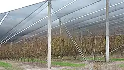 Apple trees under netting to protect them from hail, Amiens, 2015