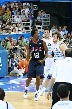 In 2008, Nocioni was selected to play with Argentina in the Beijing Summer Olympics. Argentina advanced to the quarter-final with four wins, placing behind Lithuania in the group stage, after defeating Russia. In the game against Russia, Nocioni hit 4 three-pointers, finishing with 19 points.[43] After defeating Greece in the quarterfinals, the Argentine team lost their Olympic semifinals rematch from 4 years earlier against the US team. Due to knee tendinitis,[44] Nocioni only played 18 minutes, scoring 10 points, and securing 4 rebounds.[45] Argentina next played Lithuania, in the bronze medal match, which Argentina won 87–75.[46] Nocioni scored 14 points in that game.[45]