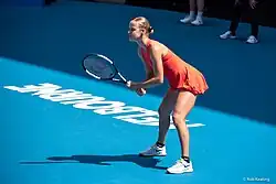 Schmiedlová commenced season at the Brisbane International and lost in the first round to Varvara Lepchenko.[14] Schmiedlová won her first match of the season at the Sydney International beating sixth seed Timea Bacsinszky in the first round.[15] She was heavily defeated in the second round by qualifier Monica Puig.[16] Seeded 27th at the Australian Open, Schmiedlová lost in round one to Daria Kasatkina.[17]