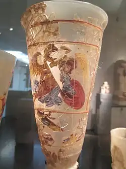 Located on the strategic crossroads of Iran, India, China and Central Asia, Afghanistan boasts a diverse cultural and religious history.[1] The soil is rich with archaeological treasures and art that have for decades come under threat of destruction and damage. Archaeology of Afghanistan, mainly conducted by British and French antiquarians, has had a heavy focus on the treasure filled Buddhist monasteries that lined the silk road from the 1st c. BCE – 6th c. AD. Particularly the ancient civilizations in the region during the Hellenistic period and the Kushan Empire.[2] The world's oldest-known oil paintings, dating to the 7th c. AD, were found in caves in Afghanistan's Bamiyan Valley.[3] The valley is also home to the famous Buddhas of Bamiyan.